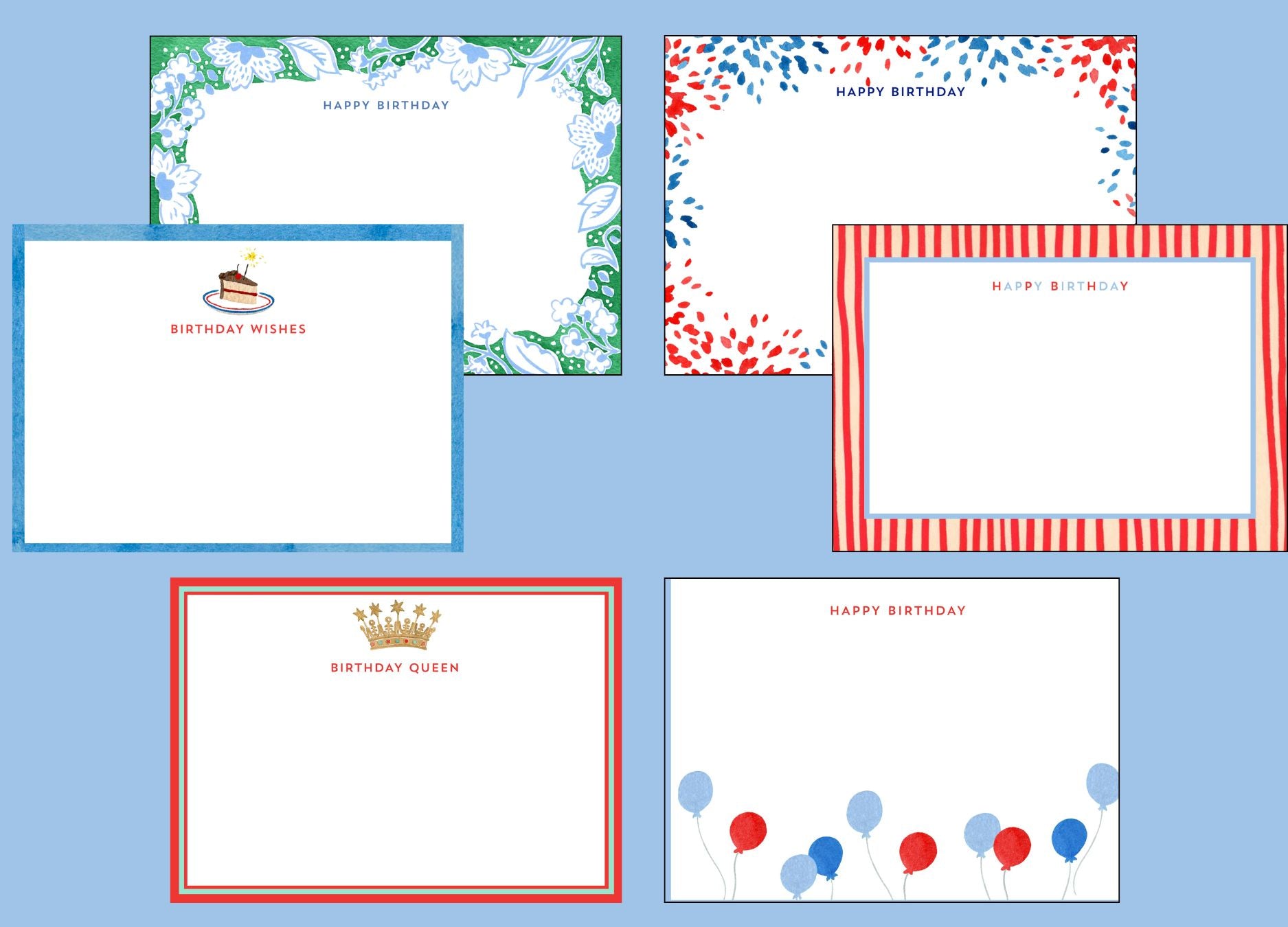 A collection of charming birthday cards featuring original artwork, with 2 of each design. Includes 12 envelopes in coordinating colors. A perfect set to keep on hand — because it’s always someone’s birthday!